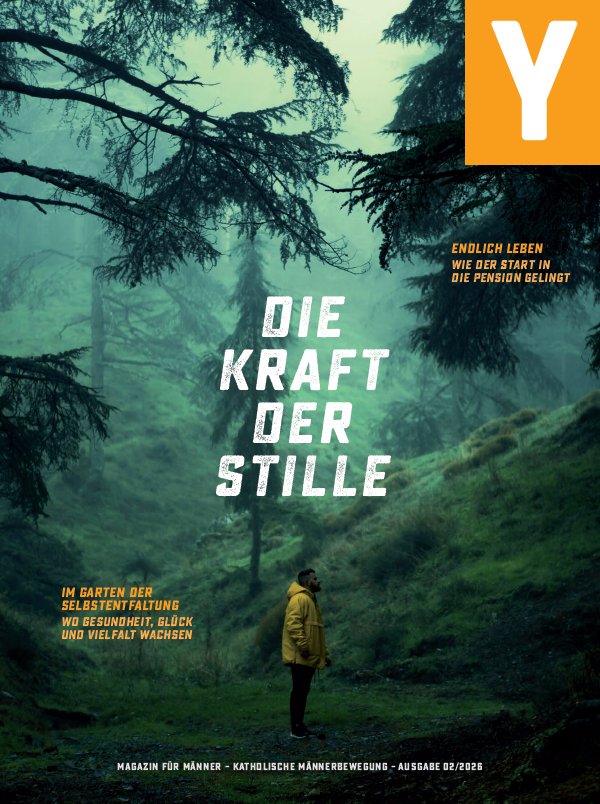 Ein Mann – mitten in einer Waldlandschaft – ist am Cover dieser zweiten Ausgabe 2026 zu sehen.